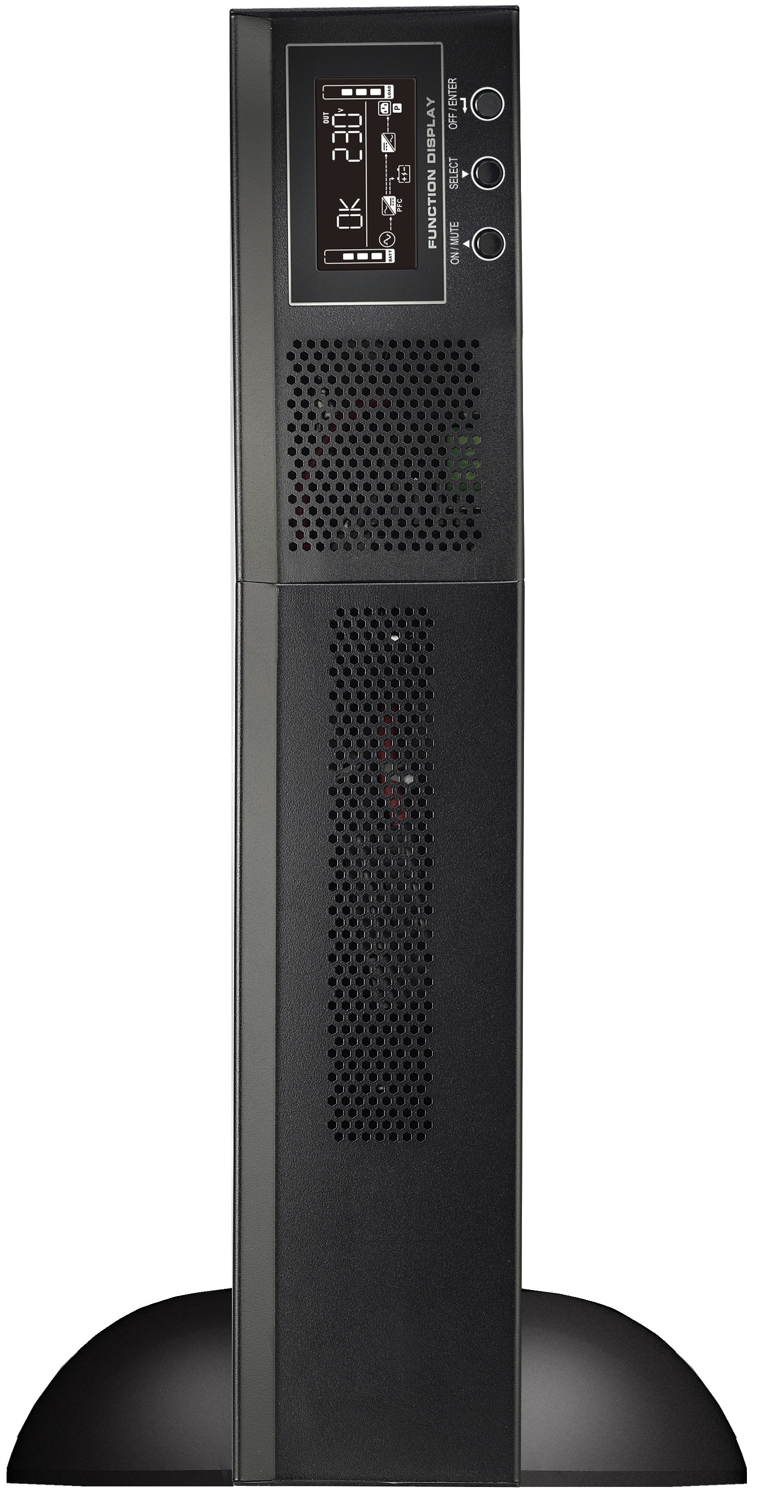 The PowerWalker VFI 1000-3000 RMG PF1 is a professional series for commercial applications featuring unity Power Factor (PF=1.0) and very strong charger with adjustable current. The wide input voltage and frequency ranges allow operation in unstable networks and provide generator support.